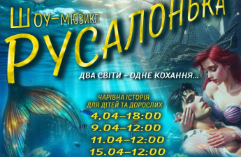 4 квітня о 18:00, 9, 11 та 15 квітня о 12:00 в Ковелі у Народному домі «Просвіта» відбудеться показ шоу-мюзиклу «Русалонька. Два світи – одне кохання» від театру-студії «10 ряд 10 місце». Ця прекрасна й чарівна історія, наповнена надзвичайними піснями та музикою і феєрією кольорів, не залишить байдужим нікого та буде цікава і діткам, і дорослим.
