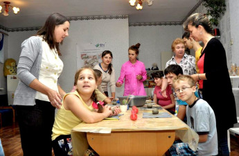 Дітки з особливими фізичними потребами у рамках проекту Арт-терапія "Ліпка глиною" навчаються творити різноманітні вироби з глини.