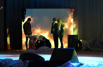 Виставу «Ромео та Джульєтта на Майдані» поставили сьогодні, 13 березня, у луцькому Палаці учнівської молоді.