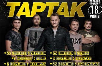 Із новою програмою на честь свого 18-річчя виступить у Луцьку гурт «Тартак». Концерт відбудеться 28 лютого у пивному клубі «Карабас-Барабас».