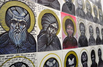 Автор графіки у центрі Луцька створив колекцію із 364 святих