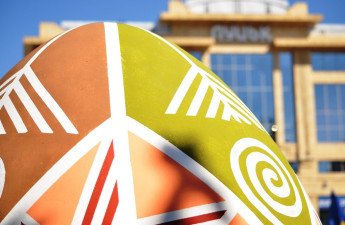 Театральний майдан Луцька уже змінює своє обличчя до Великодня – тут встановили великі писанки в межах арт-проекту «Волинська писанка. Триєдине»