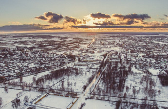 Засніжений Камінь-Каширський з висоти пташиного польоту. Фото