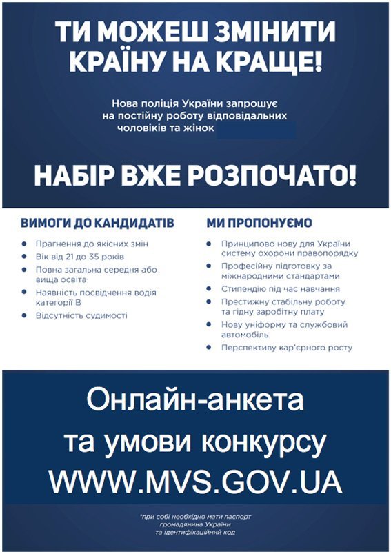 Як повідомлялося, з наступного тижня у місті починається набір до нової поліцейської патрульної служби.