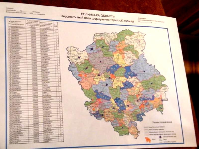 Згідно із ним, на базі 412 сільських, селищних та міських рад має утворитися 74 нові спроможні територіальні громади області, що виявили бажання об’єднатися. При цьому статут міст чи сіл змінюватися не повинен. Луцька територіальна громада, згідно із проектом, включає лише місто Луцьк.