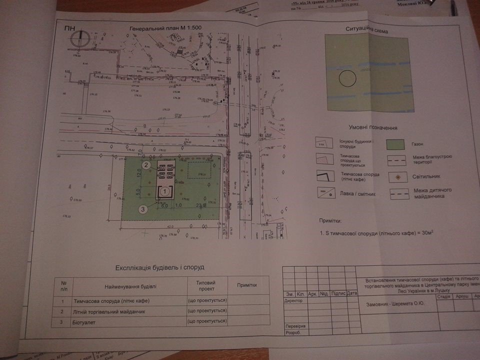 Посадовець зазначив, що дозвіл на розміщення літнього кафе у вказаному місці був виданий виконкомом 8 серпня 2015 року. Встановлення конструкції розпочалось кілька тижнів тому.