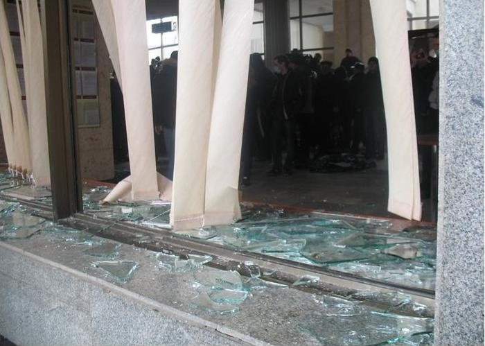 дурбелики, коли скло вибивали, будинок облрадим був пустий, навіть міліції там не було, ніхто не барикадувався. Але ж так, брати штурмом пусте приміщення для картинки на ТБ - то справа честі Гузя і Ко була. А скло так ніхто і не поставив, бо ж до влади прийшли, "важливішими" справами трбеа було займатися. Наприклад дупу в кріслі гріти і планшетоносилок в кабінетах тр*хати