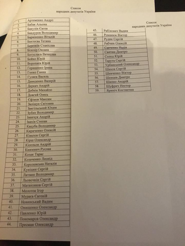«Прямого авіасполучення з Москвою в Україні немає. На Москву з Києва літають через Мінськ. Тут списки тих, хто за два минулі роки - роки війни з Росією - літали на Мінськ, і в більшості випадків далі на Москву. 59 народних депутатів України.