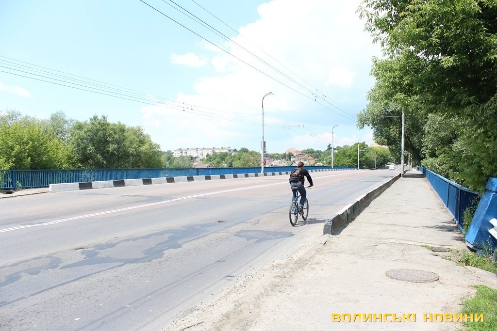На одному з луцьких мостів практично впала колона, а поручні геть похилилися у напрямку річки Стир.