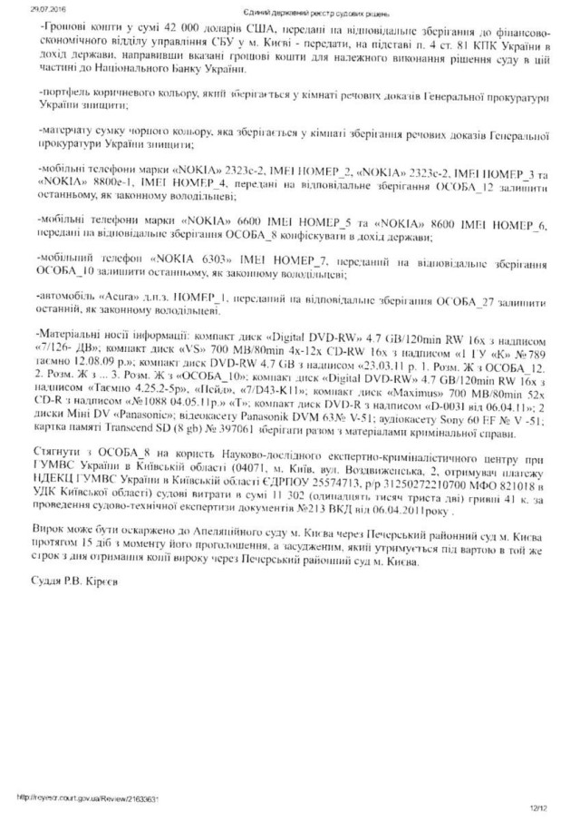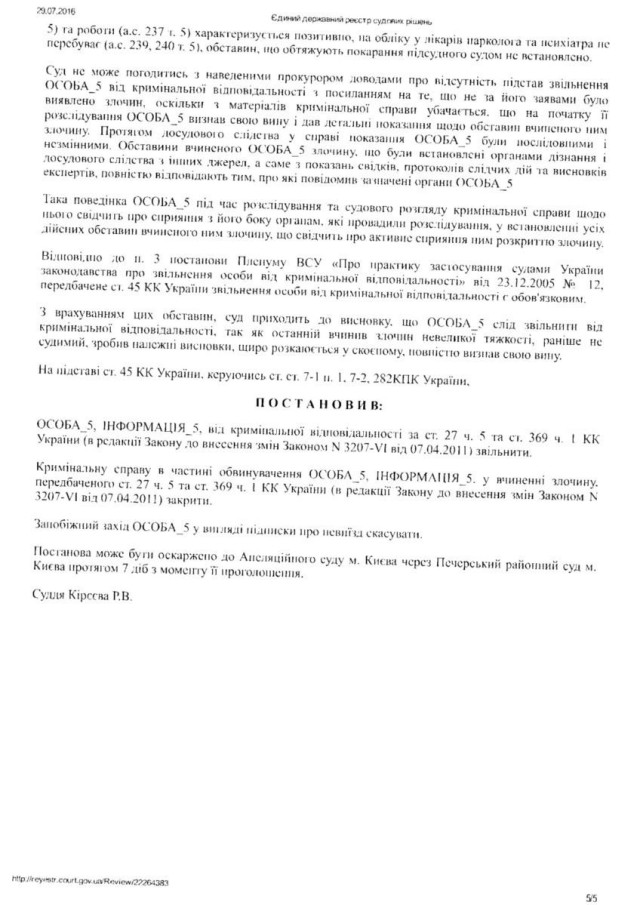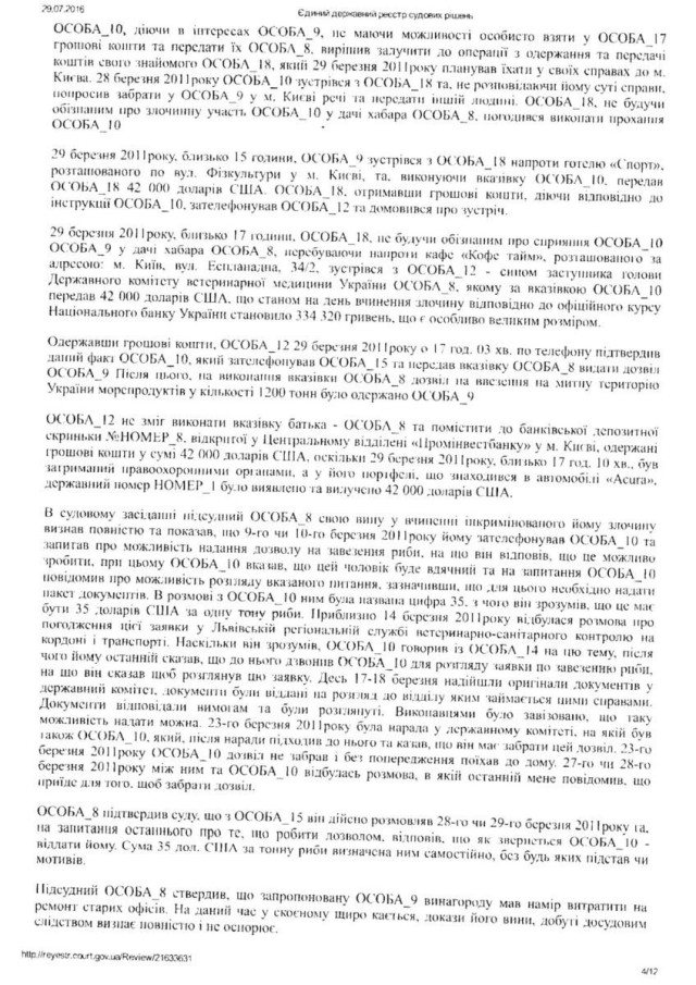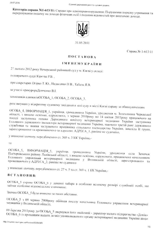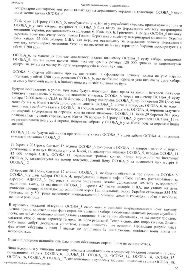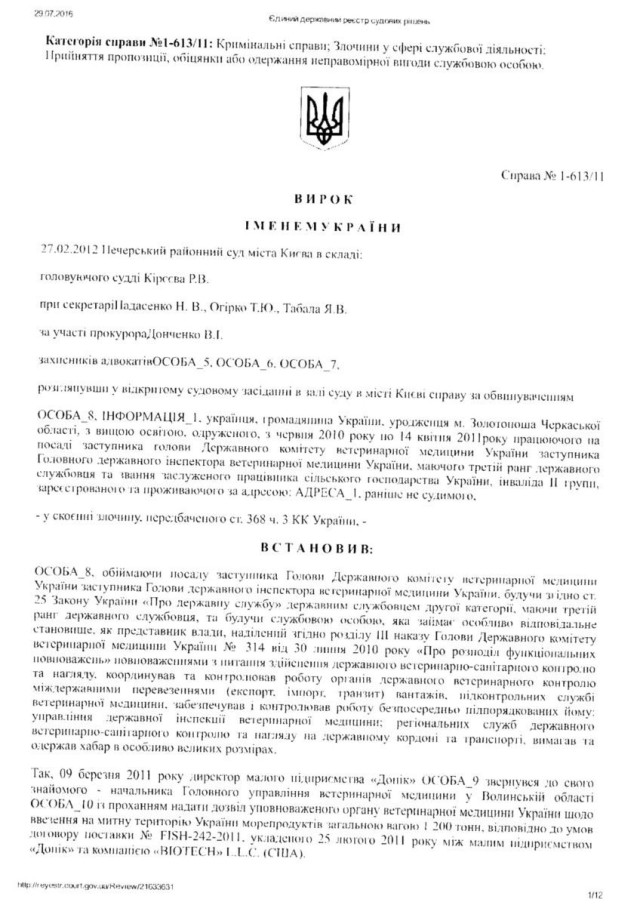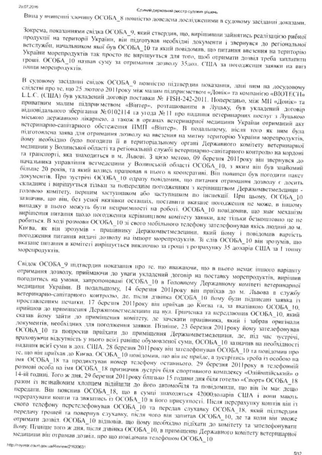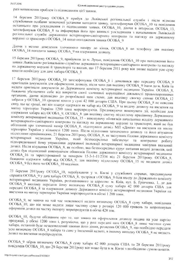 “Згідно Вироку Печерського районного суду Києва сумнозвісного судді Р. Кірєєва від 27. 02. 2012 року встановлено, що Лозинський Б. В., перебуваючи на посаді начальника головного управління ветеринарної медицини у Волинської області, приймав безпосередню участь у пособництві та пропозиції хабара у розмірі 42 тисячі доларів США. Саме Лозинський запропонував підприємцеві дати хабара за надання відповідних дозволів. При цьому в даному провадженні, згідно з даним вироком, Лозинський повністю зізнався у вчиненому злочині. Однак, у зв΄язку з щирим каяттям та сприянням у розкритті злочину статті 27, статті 369 КК України був звільнений від покарання”, – йдеться в зверненні.