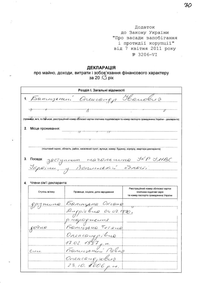 До уваги поки що начальника Волинського УВС полковника П.Шпиги: згідно з статтею 12 Закону України “Про засади запобігання і протидії корупції” з метою забезпечення відкритості та прозорості діяльності осіб, уповноважених на виконання функцій держави або місцевого самоврядування, уповноваженими підрозділами (особами) з питань запобігання та виявлення корупції проводяться: перевірка фактів своєчасності подання декларацій (проводиться протягом 15 робочих днів з 1 квітня); перевірка декларацій на наявність конфлікту інтересів; логічний та арифметичний контроль. Тобто рівно рік тому така перевірка декларації Балицького мала відбутися – чи не так, панове Щпига і Ваша довірена особа з антикорупційних справ?