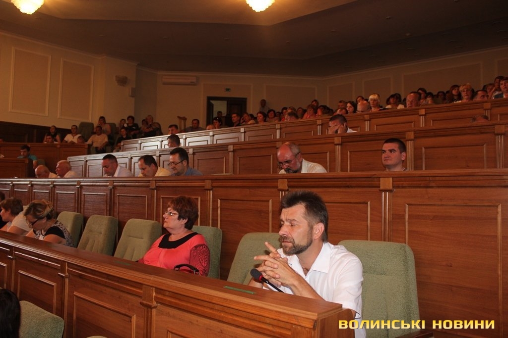 До депутатів звернувся представник від батьків-військових Ярослав Мудрик: «Зараз в Україні війна носить вже відкритий характер, бо штатні підрозділи Росії воюють на боці сепаратистів. У нас, батьків, складається таке враження, що це не війна всього народу, а лише окремих військовозобов’язаних, нас батьків, які переживають за своїх дітей. Для прикладу, на День Луцька був конкурс поїдання бутербродів, а в той час мій син не мав води, бо їх обстрілювали й пили її вони з калюжі. Не припустимо, що мобілізували і з багатодітних сімей, хворих. Ми вважаємо, що якби син президента був призваний в армію – це було б і справедливо, і патріотично».Подякував батькам за підтримку боєць батальйону «Айдар», лучанин Олександр Кралюк: «Я приїхав з міста Щастя. Саме батьки знають про основні питання і проблеми. Бо у нас немає часу задавати їх керівникам, адже ми воюємо. І по телефону не особливо поговориш, бо по мобільних визначають і захоплюють в полон. Дякую за підтримку! Я бачу у вас патріотичних дух, і в нас на фронтах теж – патріотичний дух», - звернувся з трибуни айдарівець.Після того депутати почали брати слово для своїх ліричних виступів і, нарешті, через півгодини, перейшли до голосування.