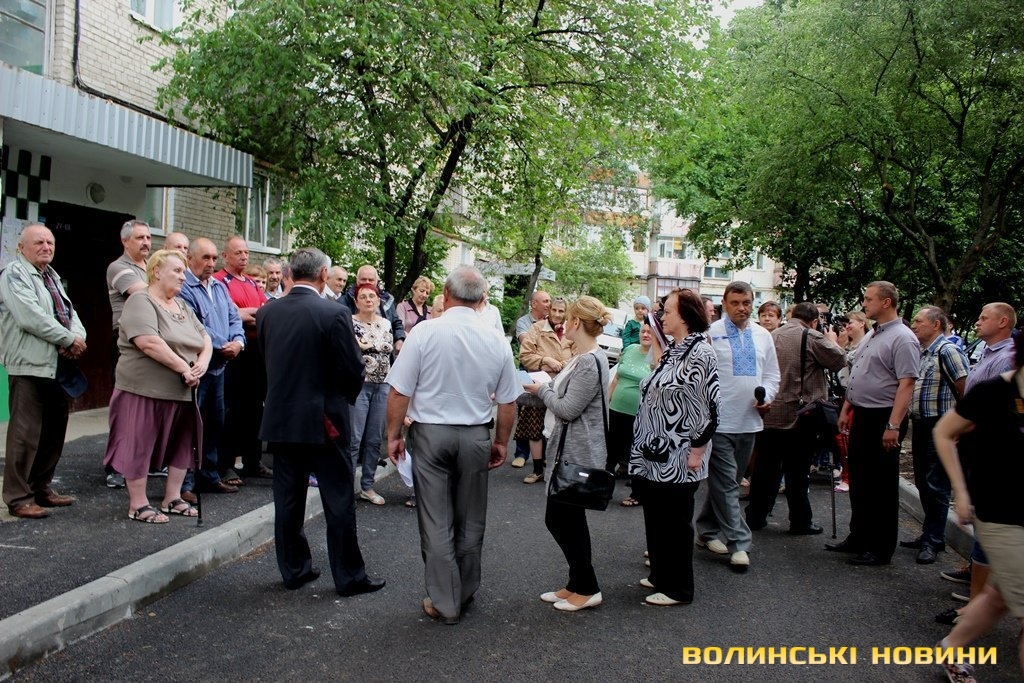 Одним з перших на місце прибув директор департаменту ЖКГ Іван Кубіцький. Він розповів, що на ремонт цього двору витратили з міського бюджету 892 тисячі гривень. А виконавцем робіт було ТзОВ «Луцька ДПМК».