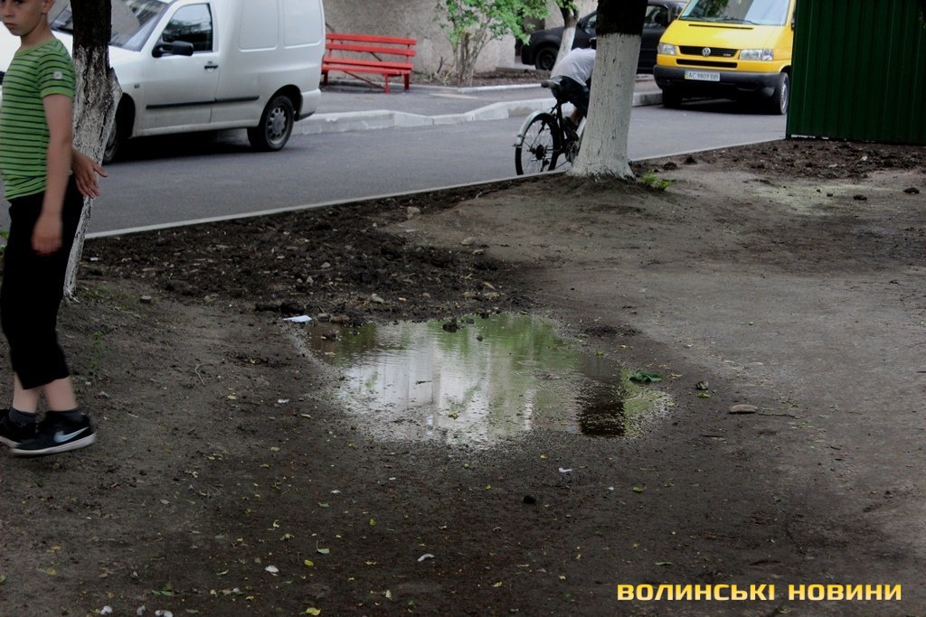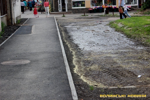 Лучани кажуть: і до «благоустрою» після дощів не могли добратися до магазину - доводилося обходити, а на майданчику дітям погратися теж проблема. І зараз не змінилася ситуація. Річ у тім, що обабіч асфальтової доріжки раніше був теж асфальт, але, кажуть лучани, ремонтники те покриття зняли, залишивши на місці яму.