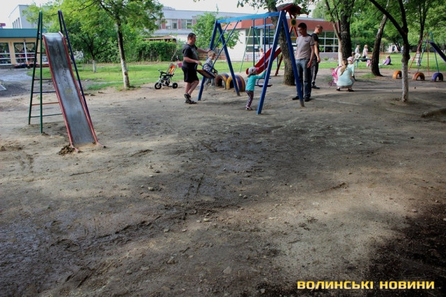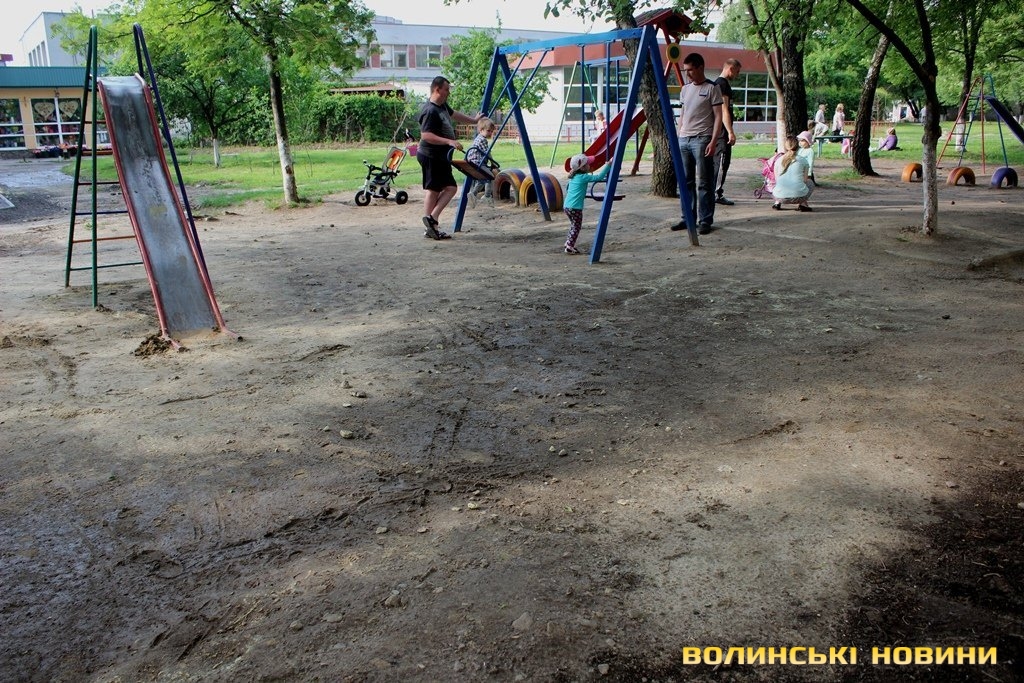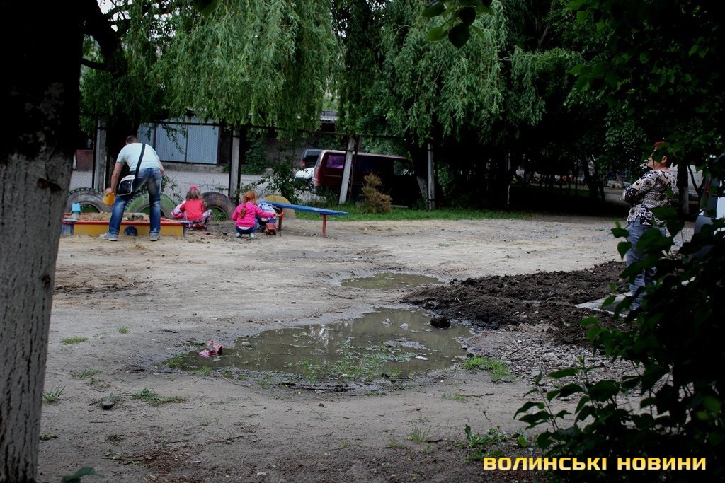 Потому приїхав міський голова. Микола Романюк завбачливо вийшов з позиченої «Хюндай Сонати» за кількадесят метрів від основної групи мешканців.Власне, чимало мешканців дякували міському голові і виконавцям робіт. Та от частині все ж не сподобалося те, в якому стані залишився дитячий майданчик. Дехто навіть не добирав слів, щоправда, подалі від групи, яка уважно слухала міського голову. «Дорогу зробили, і г***м запечатали», - лунали фрази.Така красномовність стосувалася калюж, якими ряснів дитячий майданчик, де встановили обладнання.
