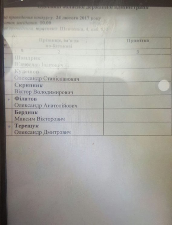 Як повідомляє Depo.Одеса з посиланням на "Южный курьер", у списку із шести чоловік, які беруть участь в конкурсі на вакансію першого заступника, представлені: В'ячеслав Шандрик - колишній "будівельний" віце-мер Одеси, також серед кандидатів Олександр Кулешов, Віктор Скрипник, Олександр Філатов, Максим Бердник і Олександр Терещук.Довідкова інформація Good morning Donbas: