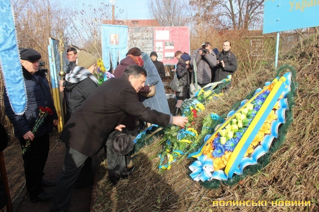 Зауважимо, що перед присутніми виступили посадовці міської ради, обласної, із облдержадміністрації, втім, правнука загиблого героя до слова не запросили. У коментар для ЗМІ Іван Мирка розповідає, що курган, до якого покладають квіти, звів його батько.