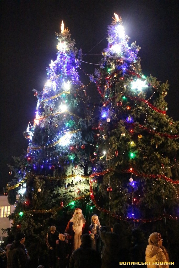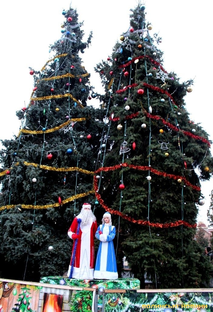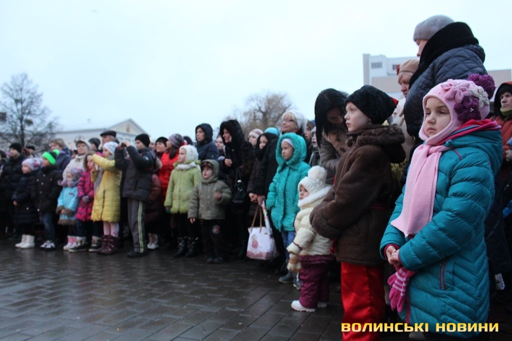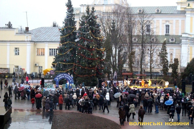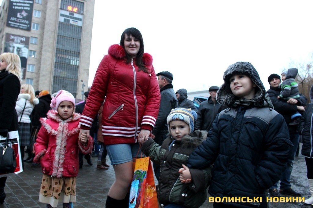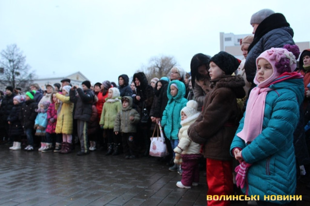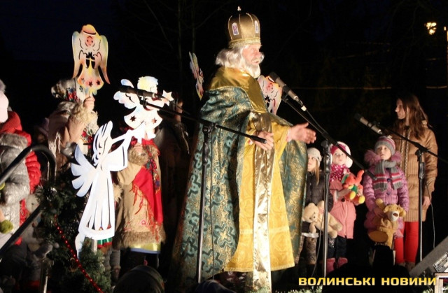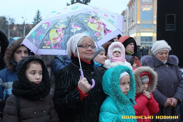 «Завершується рік, в якому ми справді відчули незалежність. Бажаю, аби ми забули слово «війна» й над Україною було мирне небо», - наголосив голова Волинської облдержадміністрації Володимир Гунчик.«Бажаю усім щастя, добра, щоб прийдешній рік ми зустрічали свято Миколая з мирним небом», - зауважив Луцький міський голова Микола Романюк.Вийшов на сцену й Святий Миколай - він попросив діток ніколи не чинити кривду й берегти Україну. А потім його янголята засвітили головну новорічну красуню.
