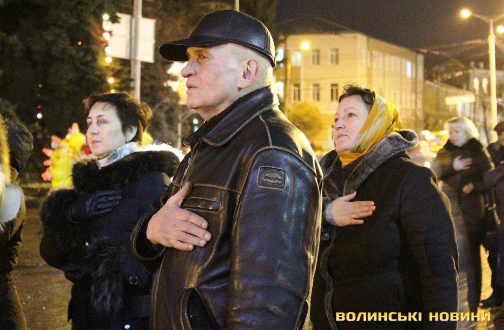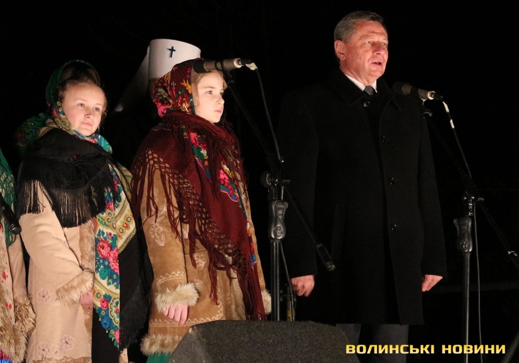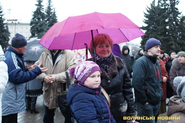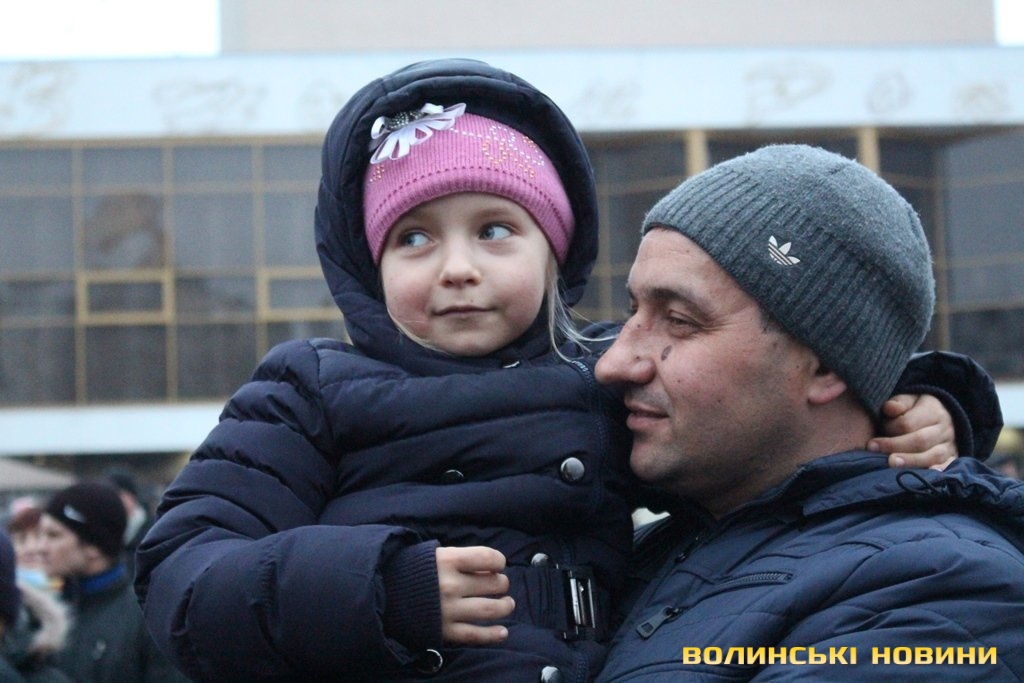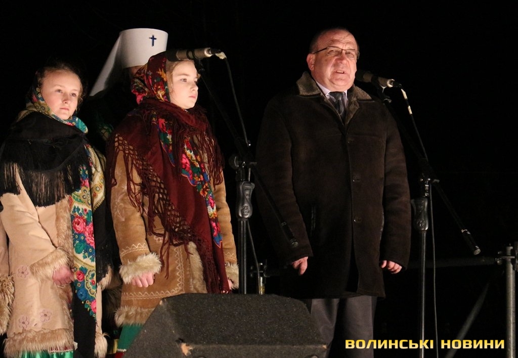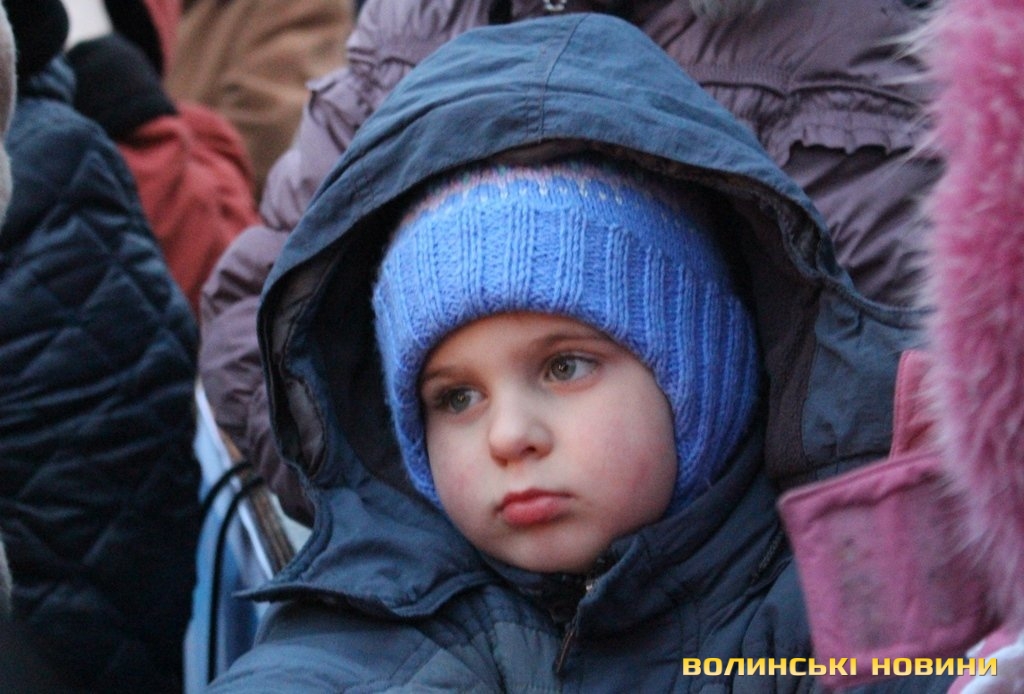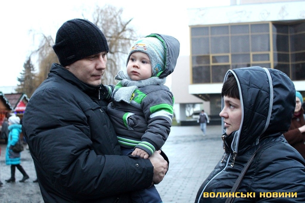 «Завершується рік, в якому ми справді відчули незалежність. Бажаю, аби ми забули слово «війна» й над Україною було мирне небо», - наголосив голова Волинської облдержадміністрації Володимир Гунчик.«Бажаю усім щастя, добра, щоб прийдешній рік ми зустрічали свято Миколая з мирним небом», - зауважив Луцький міський голова Микола Романюк.Вийшов на сцену й Святий Миколай - він попросив діток ніколи не чинити кривду й берегти Україну. А потім його янголята засвітили головну новорічну красуню.