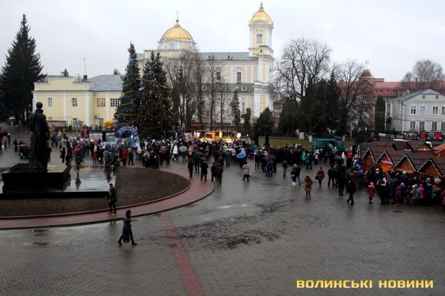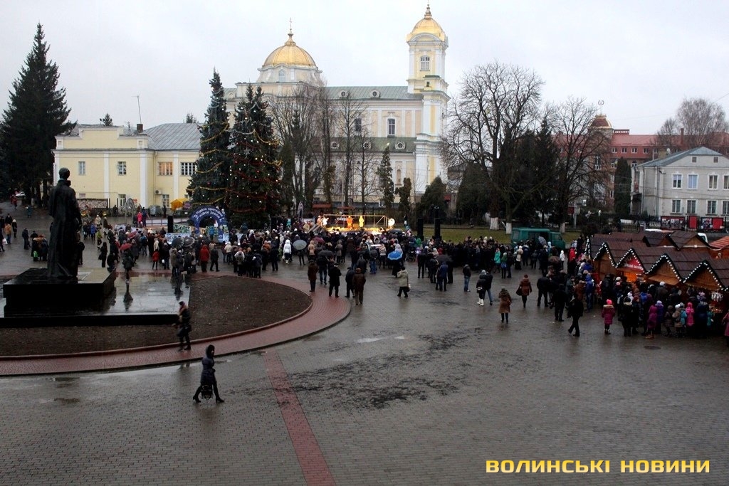 На Театральному майдані Луцька урочисто засвітили головну ялинку міста, а до діток вийшов сам Святий Миколай.