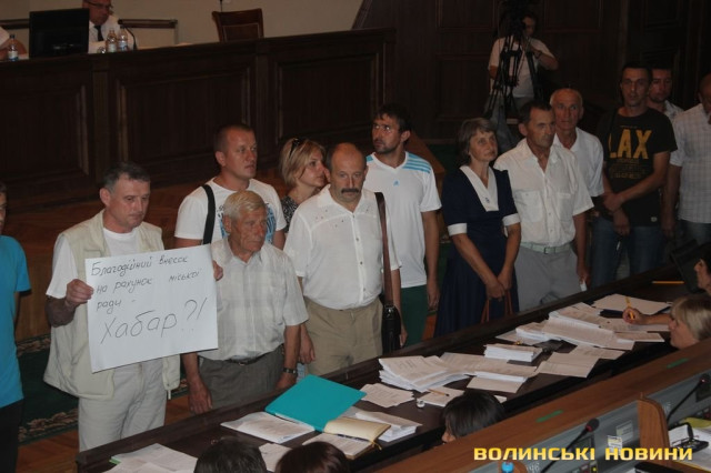 Громада Рожища приїхала на сесію Волинської облради заступитися за мера міста, якого звинувачують в отриманні хабара. Так називають благодійний внесок на користь міста, розміром 5 тисяч гривень, який сплатив лучанин Артем Орлов за сприяння в облаштуванні торгових павільйонів і оплати бензину на перевезення оркестру на час святкування Дня міста 30 серпня.