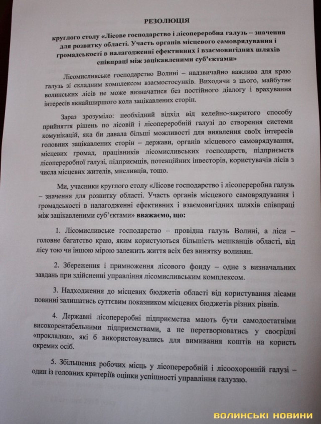 За підсумками круглого столу підготували резолюцію, у якій, зокрема, відзначили, що практика кулуарних кадрових призначень у лісовій галузі є неприпустимою.