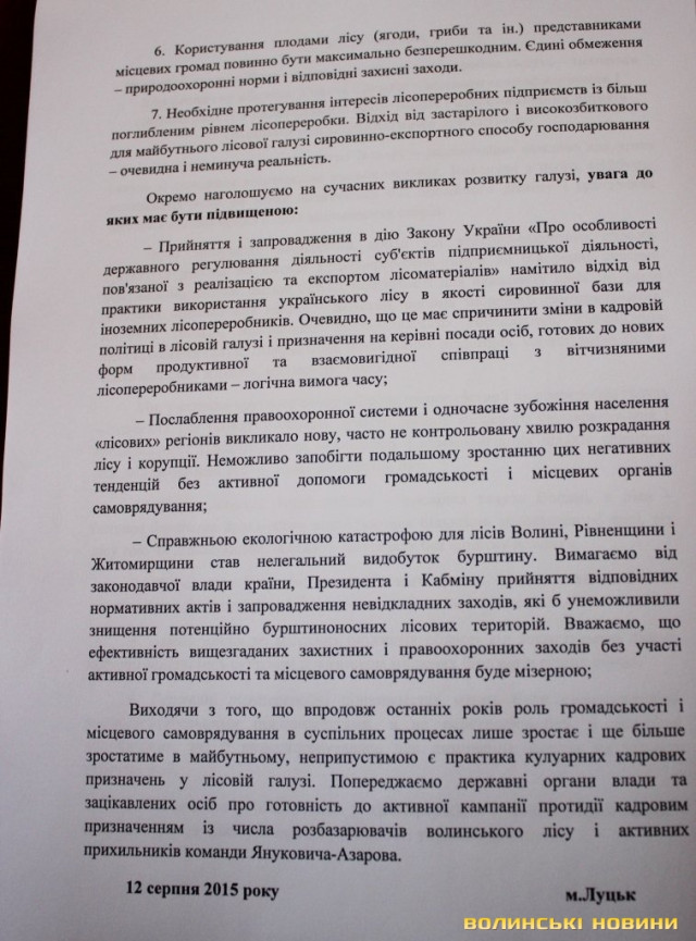 Шановні представники громади. Не робіть бурю в склянці води.Розум працівників Волинського лісу дозволить їм самим розібратись в кадрових питаннях.Справжнім лісоводам непритамні зверхність, блюзнірство,хамство,зрада.Такі люди не можуть вирощувати ліс коли результати їх роботи оцінять наступні покоління. Ці люди працюють на майбутнє Вас, Ваших дітей та онуків.Тому дайте їм спокій і краще займіться бурштином, митницею( сьогоднішній хабар 1300 баксів) мобілізацією , обмілінням Світязя і т.д. і т.п. Всім заспокоїтись і до праці.
