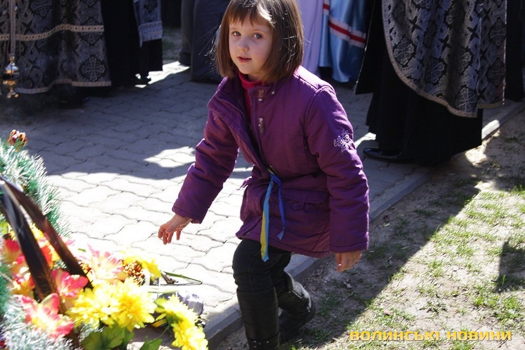 «Сьогодні 40 днів, як ми щирою молитвою вшановуємо усіх українських героїв. У цей день ми прийшли на могилу одного із них. У цей день ми згадуємо не лише загиблих, а й поранених. Також і тих, хто сьогодні охороняє кордон. Ці хлопці йшли на смерть для того, аби зміни те, що трапилось не лише в державі, а й у нас самих. Якщо ми самі не захочемо змінюватися, то буде ще не одна небесна сотня», - сказав після того, як хор проспівав «Вічную пам’ять», Митрополит Луцький і Волинський Михаїл.