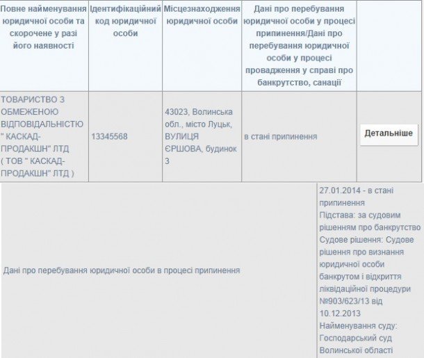 Разом з тим, при проведенні процедури банкрутства «Каскад-Продакшн ЛТД» також було заявлено вимогу кредитора у розмірі 200 мільйонів доларів. Позику бізнесменам дав цього разу «Кредитпромбанк». Господарський суд Волинської області зобов’язав ТзОВ «Каскад-Продакшн ЛТД» повернути усю суму. Банк свого часу давав їм кредит на придбання нерухомості під будівництво комплексу з виробництва казеїн атів. Тож фінустанова сподівалась повернути гроші за рахунок продажу арештованого іпотечного майна. І попри примусове стягнення, навряд чи на сьогодні бізнесмени таки повернули борги.