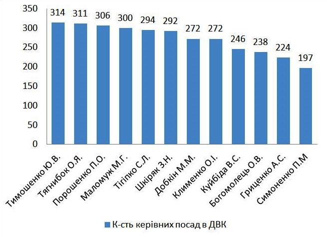 Посад заступників голови ДВК більше всього у Юлії Тимошенко – 107. Далі - (103) та Микола Маломуж (101).