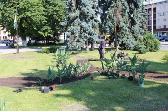 Уже висадили квіти на вулиці Лесі Українки, біля пам’ятника Лесі Українці. Тривають роботи на Театральному майдані. З четверга нові квіткові барви з’являться на проспекті Волі.