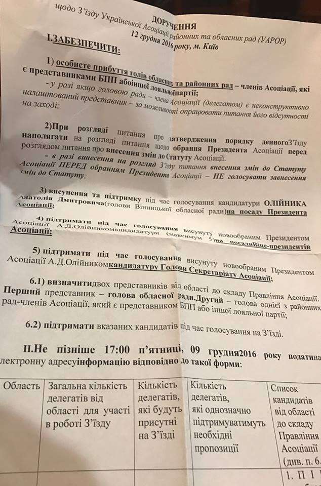Під час підготовки до з’їзду Української асоціації районних та обласних рад, який повинен відбутись в Києві 12 грудня, почали надходити "інструкції", в яких вказано, кого підтримувати на цьому заході.