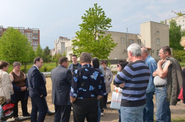 - хочуть вони там з часом дитячий майданчик, там в середині двору є не поганий, облаштований Палицею, а вони хочуть зовні двору над дорогою. 20 років вже білохали хочуть і все не можуть. Там пройти в дощ не можливо, одне болото.