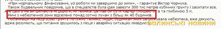 Очільники області не раз хвалилися зробленим. Ще в середині літа на офіційній інтернет–сторінці облдержадміністрації з'явилася новина, що «… з небезпечної зони відселено понад сотню лучан з більш як 40 будинків». Хоча, як з’ясувалося, ніхто з місцевих про відселення не знає.