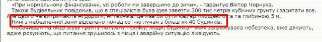 Ого-го, роздули сенсацію, придерлися до слів. Більше немає де "правди" шукати, як тільки там, де людям допомогли. Чомусь як народ там тихенько каналізацію свою в схил виводив і какульки спускав в річку, ніхто з журналістів не написав критику в бік людей, мовляв такі-сякі, самі себе до біди доводять. А як допомогли тим "мудрагелям", за державні гроші, міждупрочім, то зразу журналістська братія відшукала в словах сенсацію. Люди ж то самі зіїхали, поки круча не зїіхала разом з людьми. А тут, опа, не перевіривши слова, не знайшовши тих,хто говорив першим, роздули сенсейшен. ага