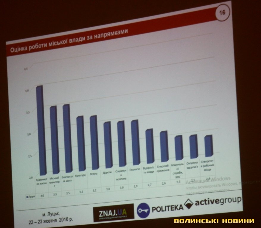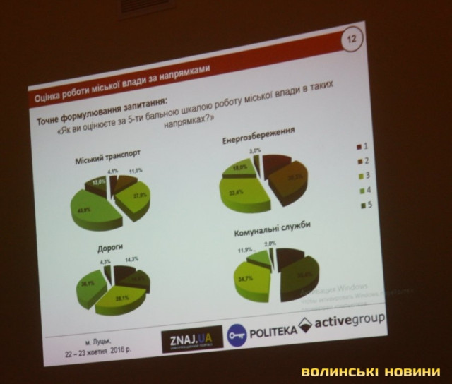 Також опитали лучан щодо оцінки роботи міської влади за 13 різними напрямками: від міського транспорту до створення робочих місць. Йшлося не про результати роботи, а швидше про наміри, адже протягом одного року неможливо втілити всі плани.