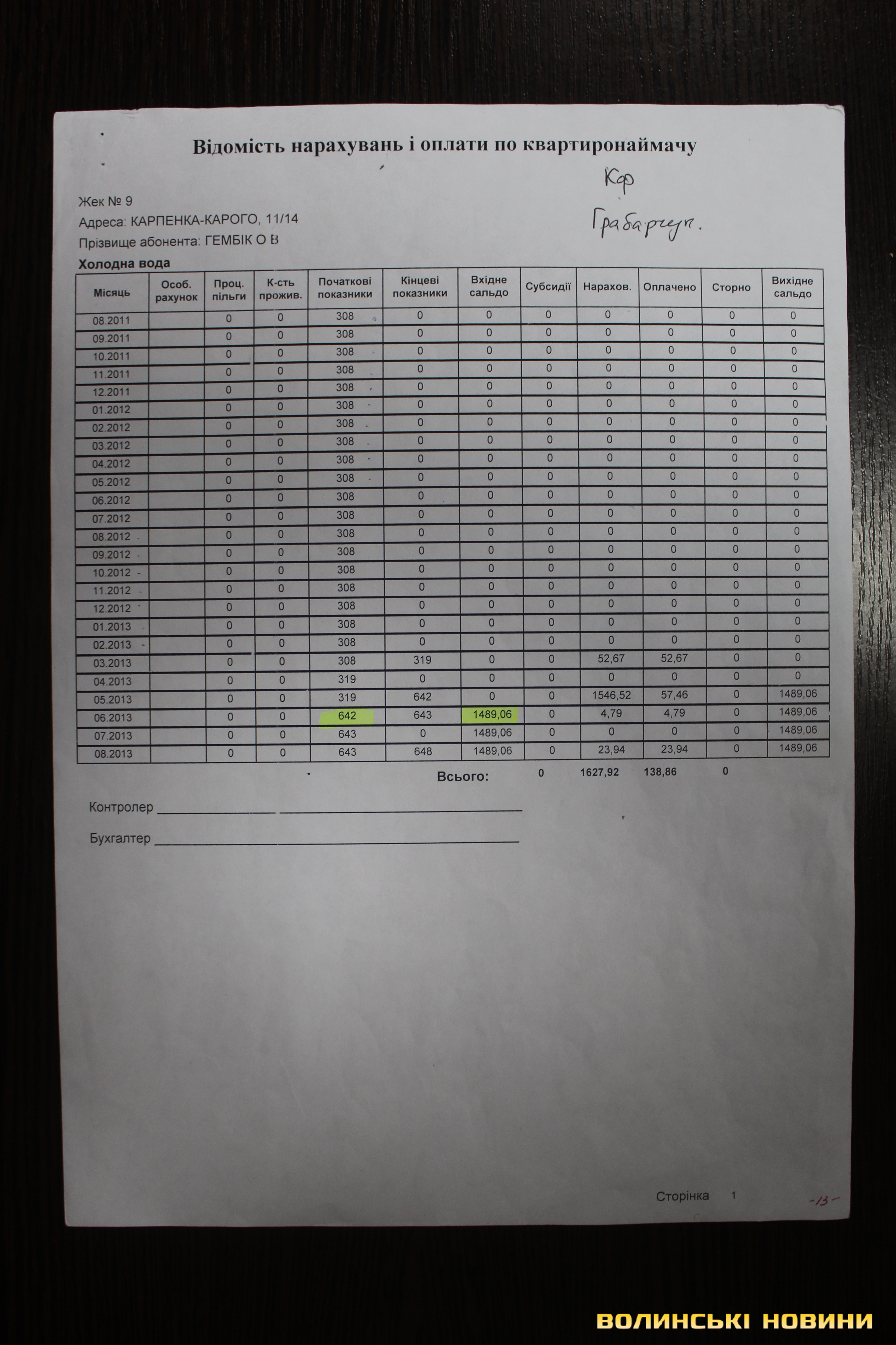 У редакцію Інформаційного агентства Волинські Новини звернувся містянин Олексій Гембік. Чоловік запевняє, що після купівлі квартири, яка була, з його слів, без комунальних боргів, справно сплачував рахунки.