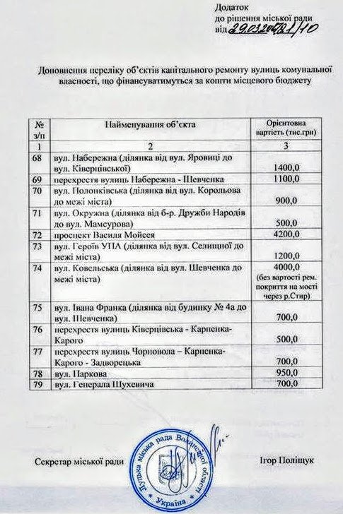 Доповнення переліку об'єктів капітального ремонту вулиць оприлюднив секретар Луцької міської ради Ігор Поліщук, який відучора є виконувачем обов'язків міського голови.