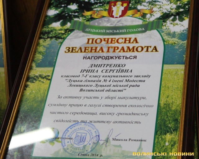 Трьом школам, які найбільше зібрали макулатури, вручили грамоти та цінні подарунки. Переможцями акції стали НВК №9, ЛНВК «ЗОШ І-ІІІ ступенів №22 – ліцей» та гімназія № 4 імені Модеста Левицького. А НВК № 9 за перше місце вручили ще й перехідний кубок міста.