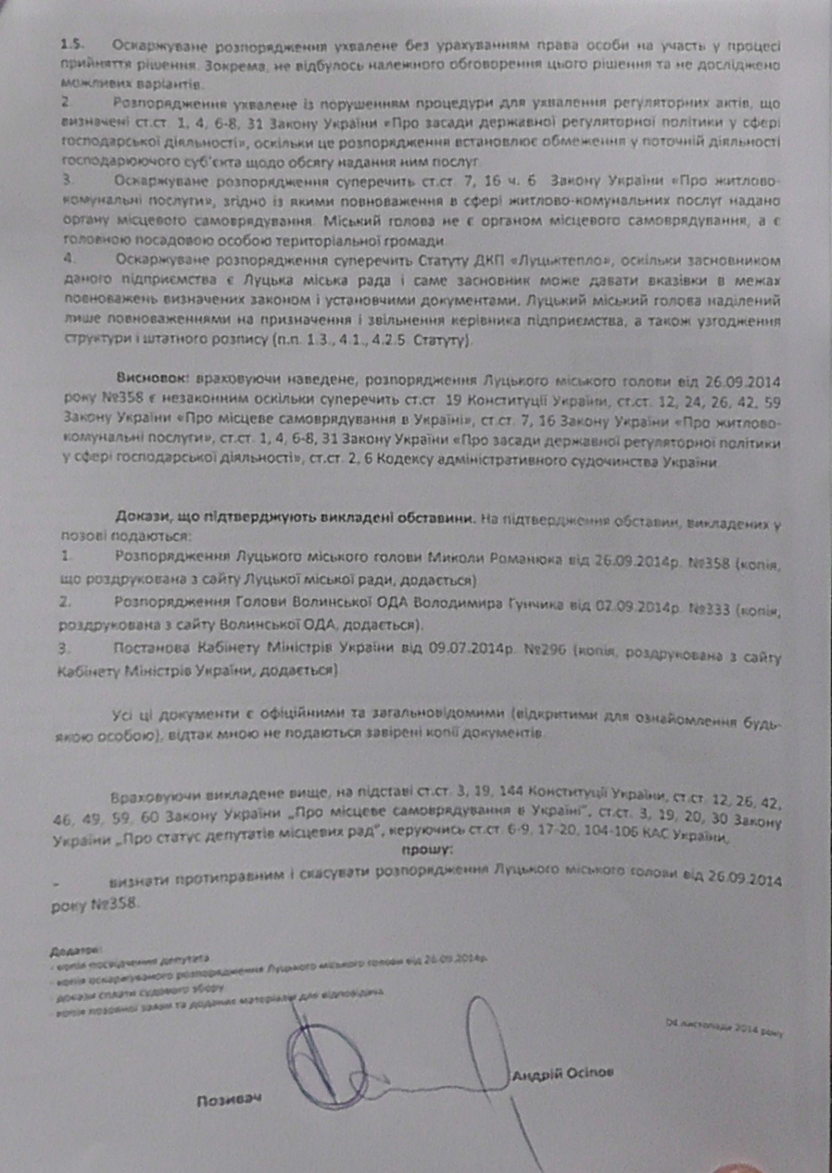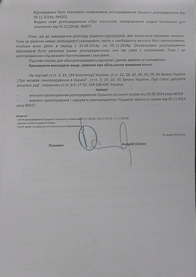 Тож, 23 грудня у міськрайонному суді міста Луцька мав відбутись судовий розгляд за позовом про визнання незаконним вищезгаданого розпорядження.