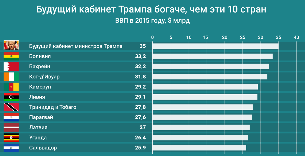 Майбутній кабінет Трампа заможніший, ніж 10 країн разом узяті. ІНФОГРАФІКА