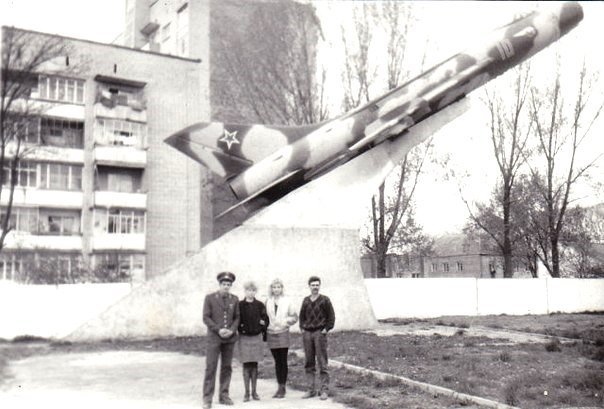 При вїзді в містечко стояв монумент - винищувач-бомбардувальник Су-7БМ. На сьогоднішній день він демонтований. Фото 1990 року і тут воно в дзеркальному відображенні