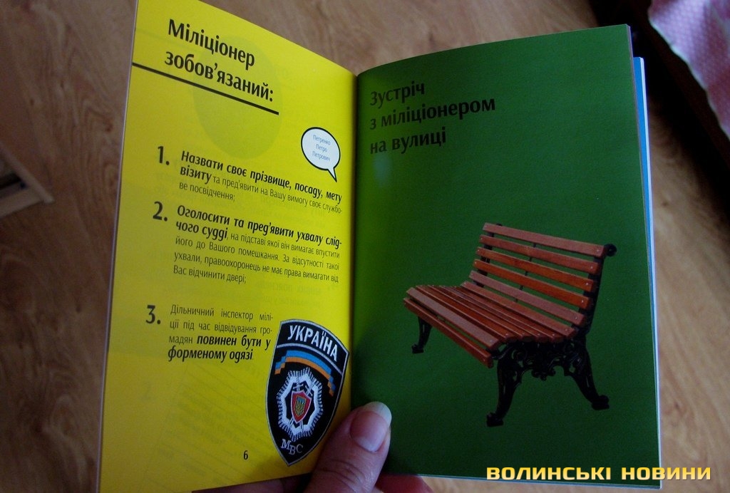 У кожному розділі детально роз’яснені права людини, яка спілкується з міліціонером та обов’язки правоохонця, а також вказані відповідні статті Законів України.Окрім того, Асоціаціія УМДПЛ розробила й мобільний додаток «Міліція під контролем» для операційних систем Android та iOS. Він складається з 17 розділів, і у ньому можна знайти відповіді й на інші питання: «Спілкування з працівником ДАІ», «Особистий огляд і огляд речей міліціонером», «Фото, відео, аудіо фіксація діяльності міліції» та інші.Також в цьому додатку розміщені телефони та адреси територіальних відділень міліції, контакти організацій, де можна отримати консультацію чи правову допомогу.