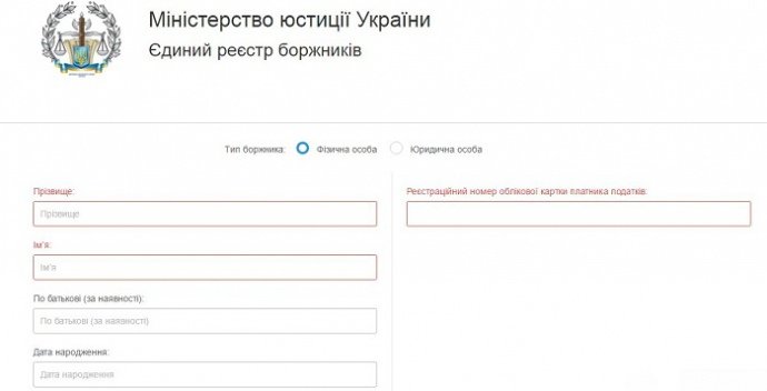 Міністерство юстиції оголосило про запуск відкритого онлайн-реєстру громадян і компаній-боржників.