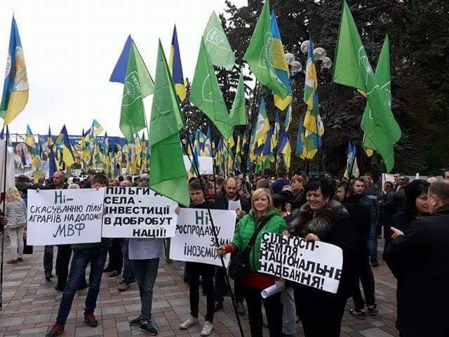 В акції, що розпочалася о 9.00 4 жовтня на площі біля Верховної Ради України, беруть участь народні депутати від УКРОПу Тарас Батенко, Валентин Дідич та Ірина Констанкевич, укропівців з різних регіонів, зокрема, депутати місцевих рад Київщини, активісти з Чернігівщини та Черкащини. Вони тримають партійні прапори та гасла «Патріоти – за рідну землю!», «Сільському господарству – інвестиції, а не податковий грабунок!», «Сільгоспземля – національне надбання!», «Ні – розпродажу землі іноземцям!», «Пільги для села – інвестиції в добробут нації!», «Ні – скасуванню пільг для аграріїв на догоду МВФ!».