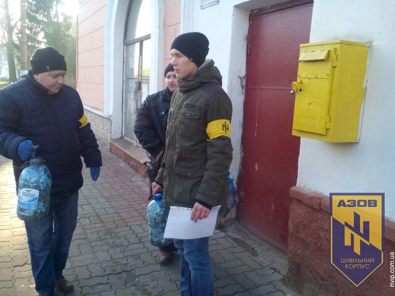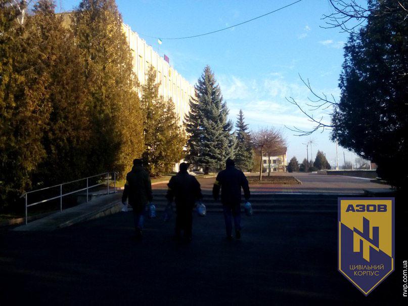 До сесійної зали членів ЦК «Азов» не пропустили, але в коридор до активістів вийшов перший заступник міського голови Нововолинська Андрій Сторонський. У присутності місцевих депутатів та представників ЗМІ члени Цивільного Корпусу «Азов» Нововолинська вручили зібрані шприци.