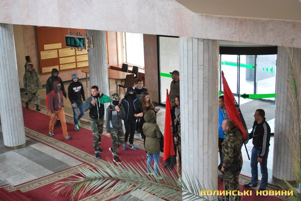 В облдержадміністрацію прийшли не лише представники ДУКу, а й чимало молодиків, частина з яких - неповнолітні. Один із них Святослав сказав, що він представник «Громадського руху» і підтримує ДУКівців, а фото просив не показувати, мовляв, боїться переслідувань.