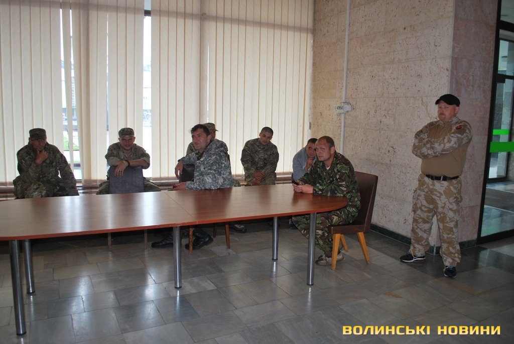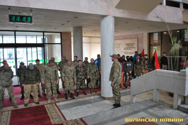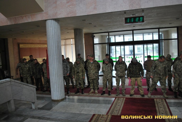 Понад два десятки ДУКівців прийшли в облдержадміністрацію, аби зустрілися з губернатором Волині та керівниками силових структур. Уповноважені від організації більше години вели перемовини у закритому режимі та підготували спільну заяву та звернення до керівництва держави.