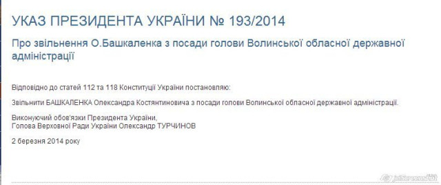 Окрім того, сьогодні ж, 2 березня, Олександра Башкаленка офіційно звільнили з вищезгаданої посади.