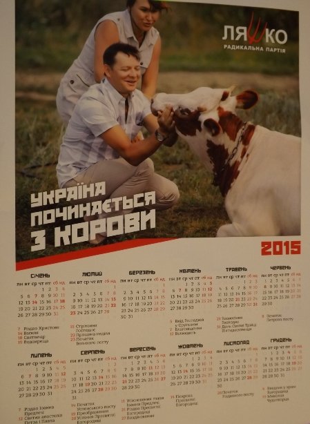 У місті Луцьку (ВО №22) роздають календарі від «Радикальної партії» без інформації про те, хто її виготовив. На календарі зображений лідер партії Олег Ляшко разом з жінкою і з коровою. Також тут зазначені назва партії та її логотип.
